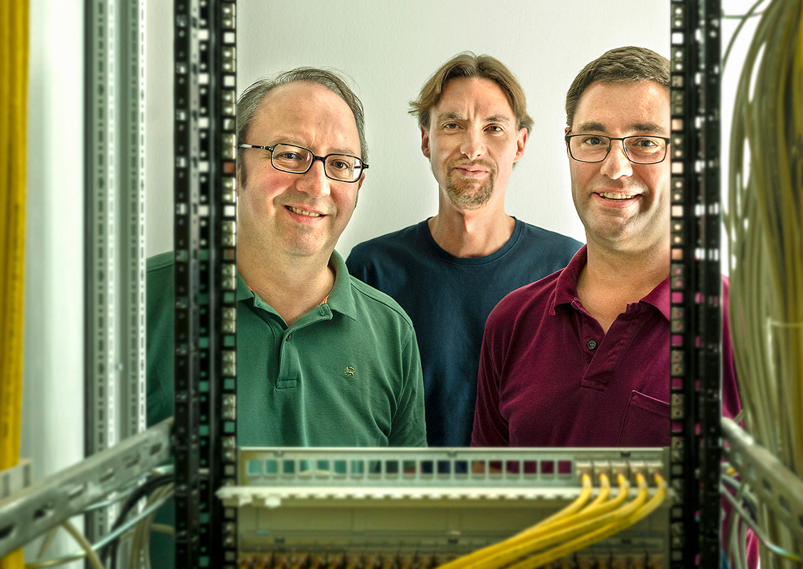 Oliver Nowak, Christian Dittrich und Michael Schmid sind die technischen Problemlöser im Studierendenwerk. Das Dreiergespann der IT-Abteilung kümmert sich darum, dass Server, Bürorechner, Mensakassen und auch Waschmaschinen laufen.